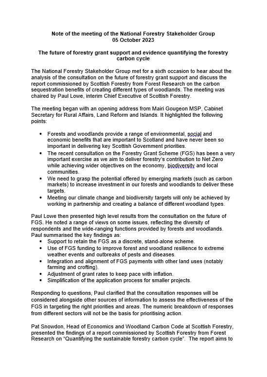 Note of the meeting of the National Forestry Stakeholder Group - 05 October 2023