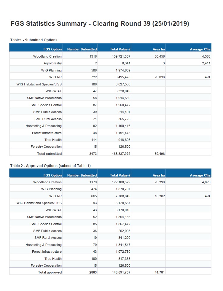 Overview of Forestry Grant Scheme Statistics for January 2019.