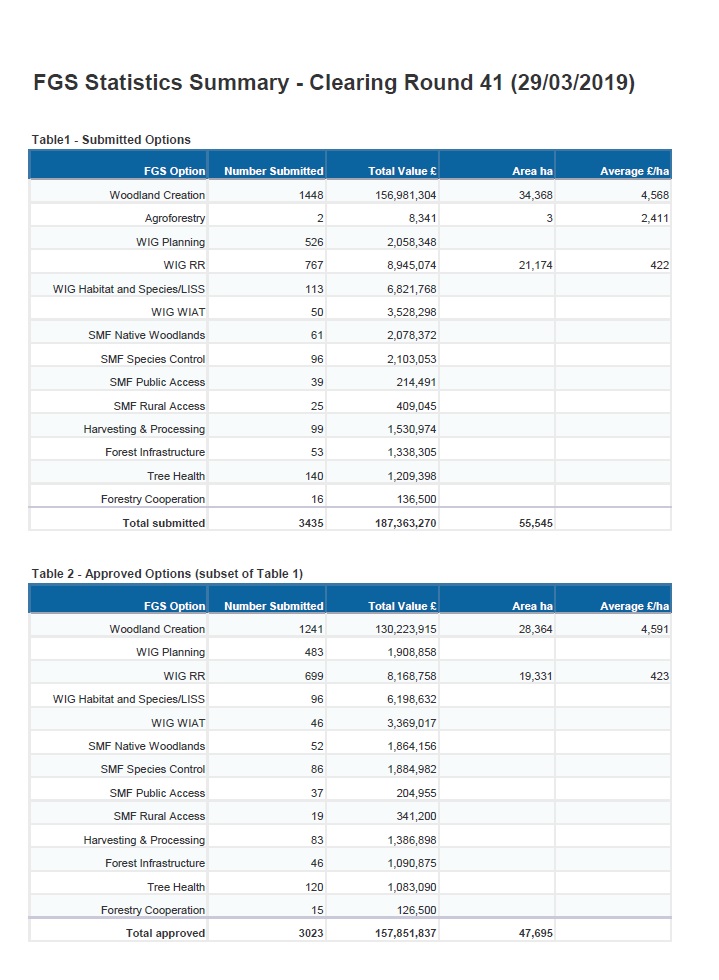Overview of Forestry Grant Scheme Statistics for February 2019.