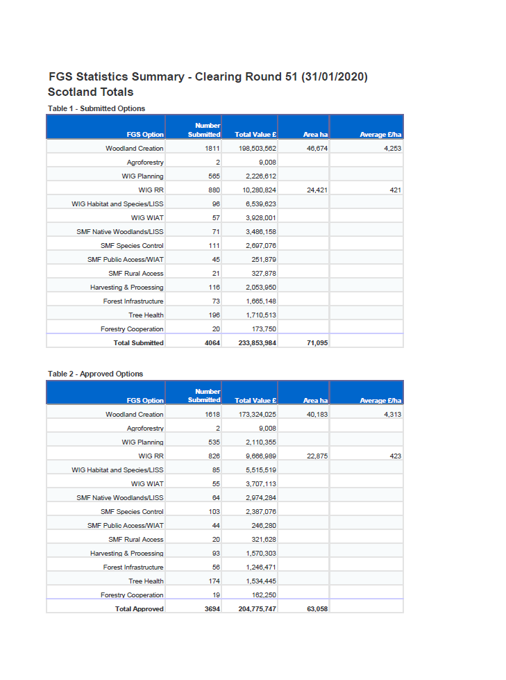 Forestry Grant Scheme Statistics January 2020