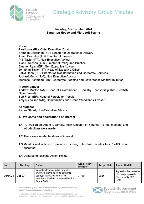 Scottish Forestry Strategic Advisory Group (SAG) minutes for 5 November 2024.