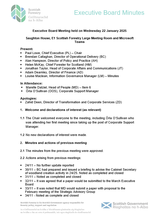 Scottish Forestry Executive Board (SFEB) minutes for 22 January 2025.