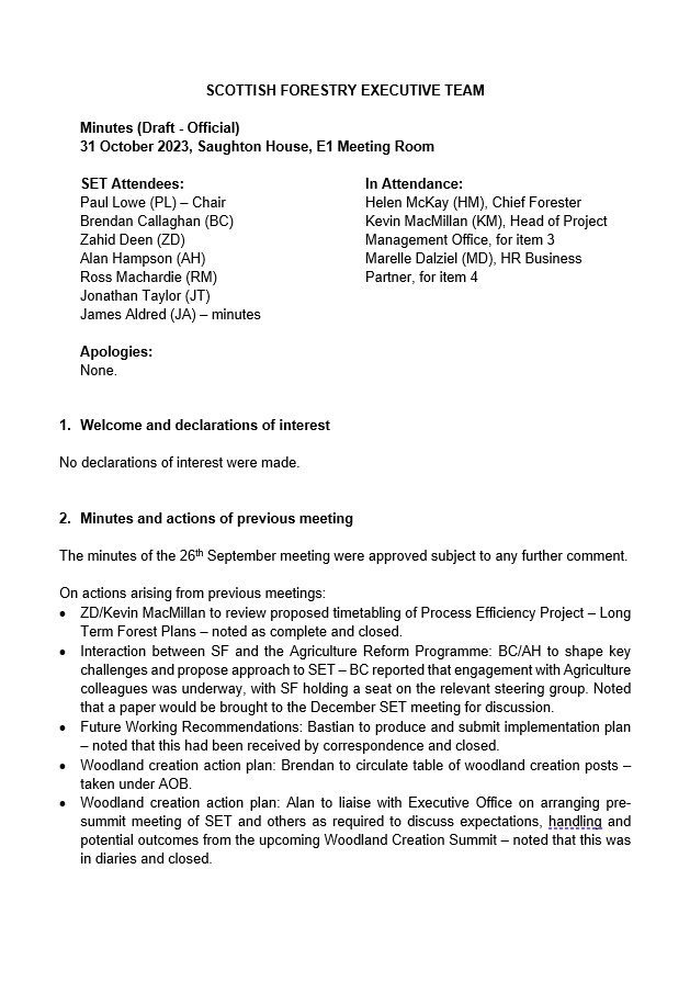 Scottish Forestry Executive Team (SFET) minutes - 31 October 2023