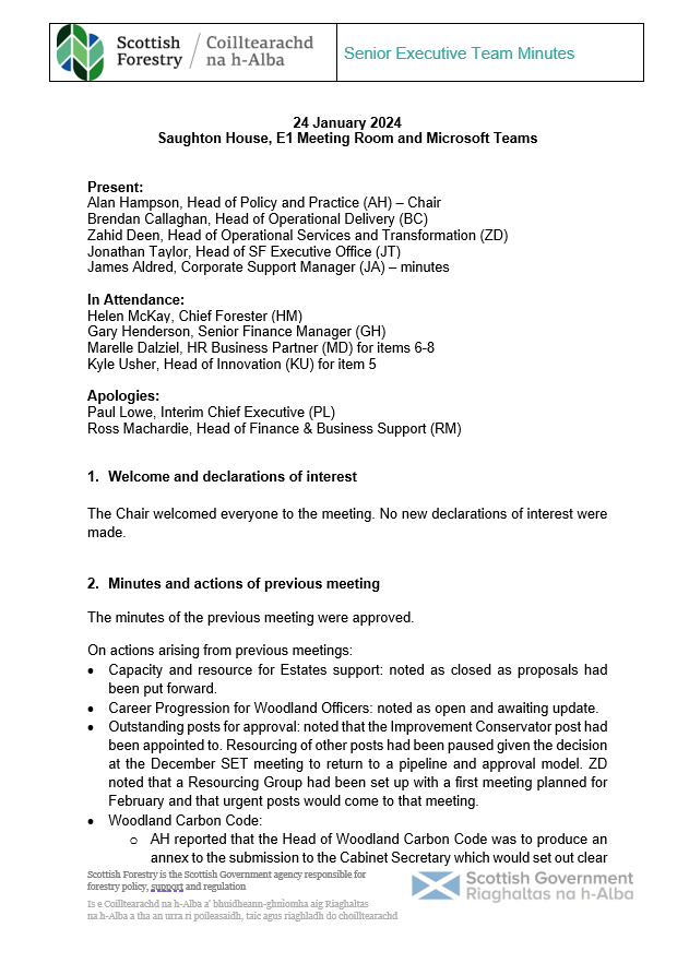 Scottish Forestry Executive Team (SFET) minutes - 24 January 2024