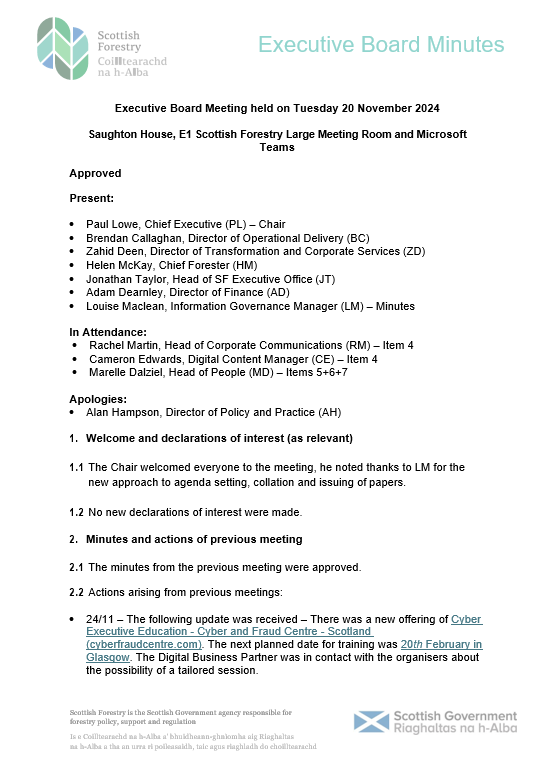 Scottish Forestry Executive Board (SFEB) minutes for 20 November 2024.