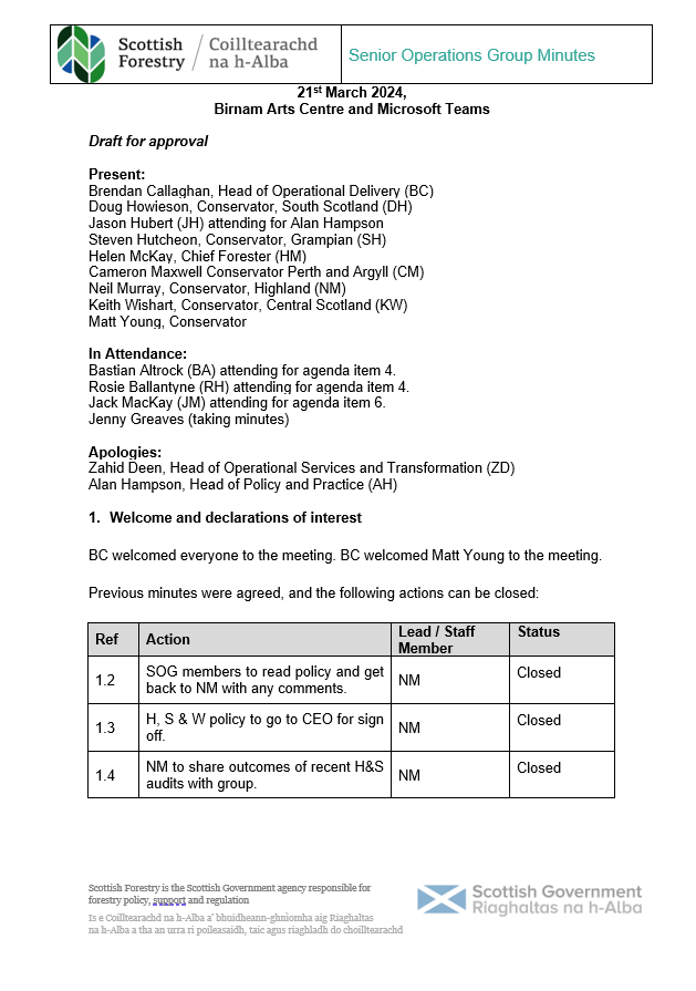 Scottish Forestry Senior Operations Group (SOG) notes for 21 March 2024.