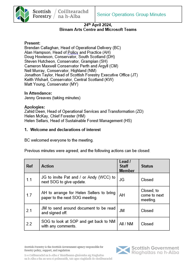 Scottish Forestry Senior Operations Group (SOG) notes for 24 April 2024.