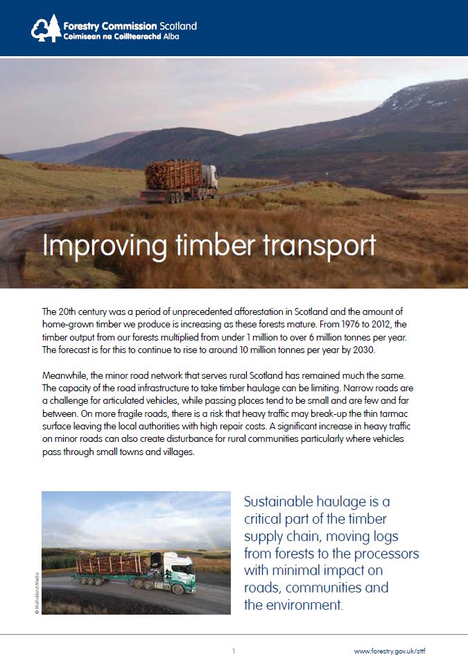 This document provides a guide to improving timber transport in Scotland and outlines previous case studies throughout Scotland.