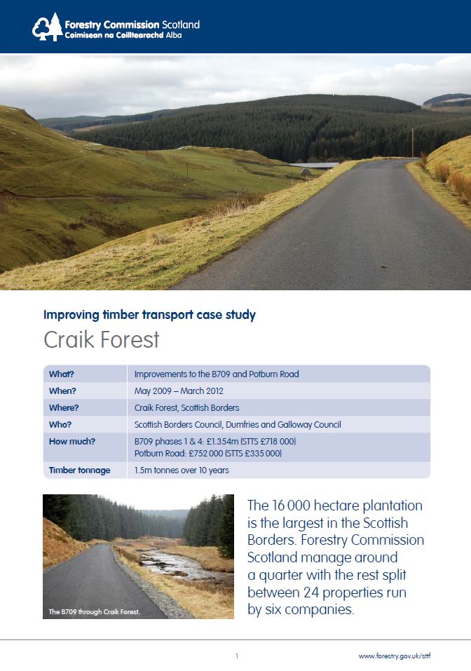 The Craik Forest haulage route accesses a 16000 hectare plantation, the largest in the Scottish Borders, and is projected to carry 1.5m tonnes of timber over ten years.