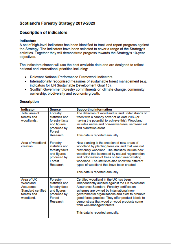 Scotland's Forestry Strategy 2019 to 2029 - description of indicators.