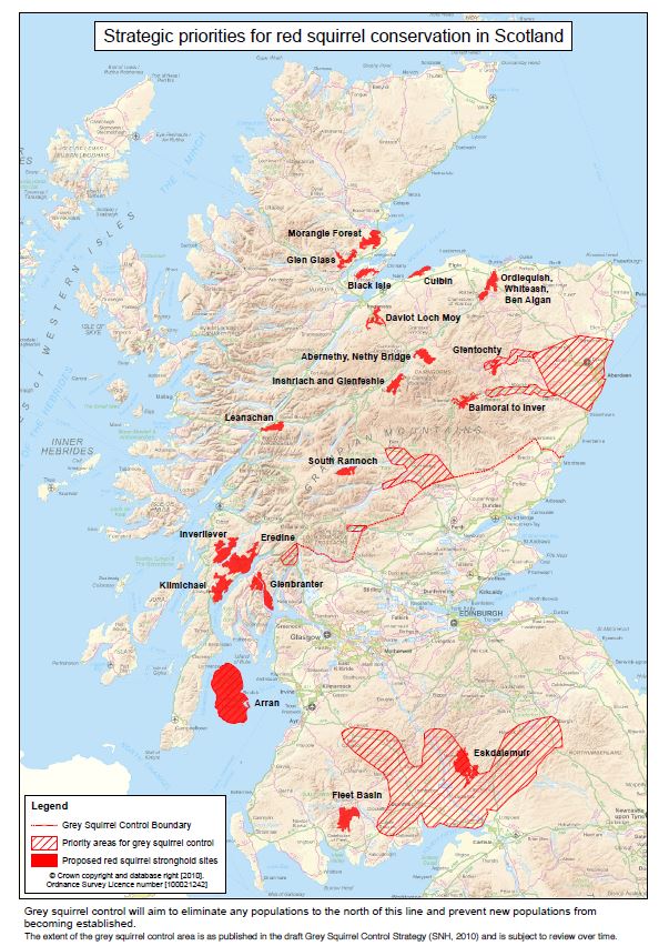 In addition, priority ares for grey squirrel control and the grey squirrel control boundary are mapped.