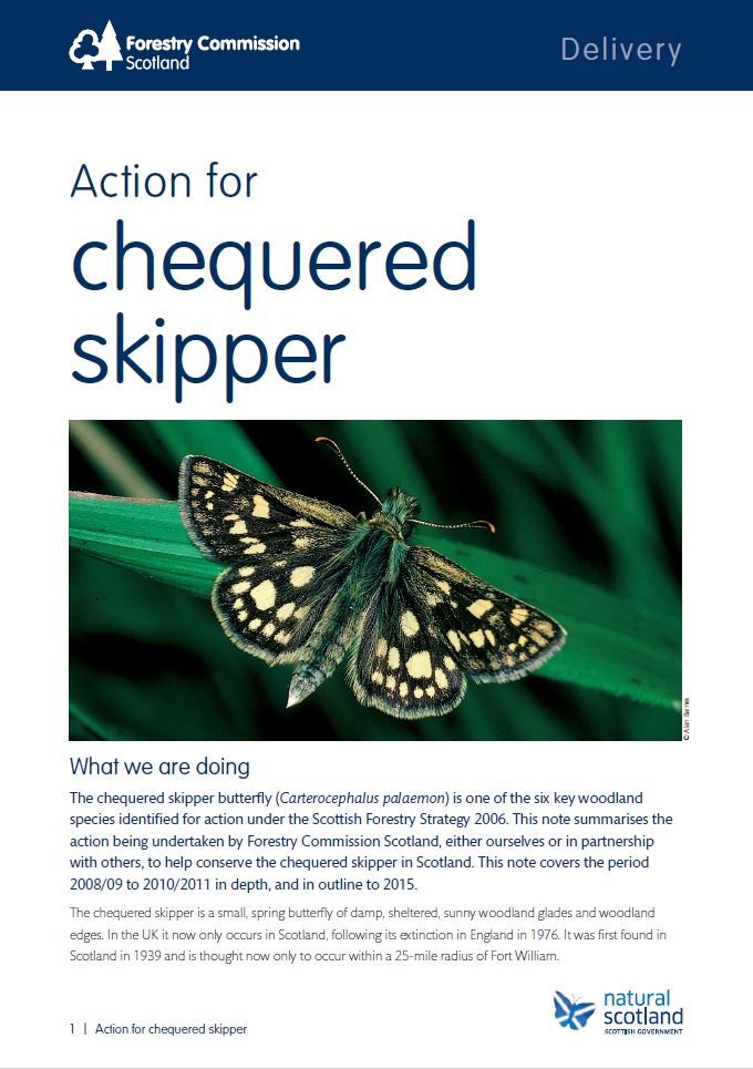 This note summarises the action being undertaken by Forestry Commission Scotland (now Scottish Forestry), either ourselves or in partnership with others, to help conserve the chequered skipper in Scotland.
