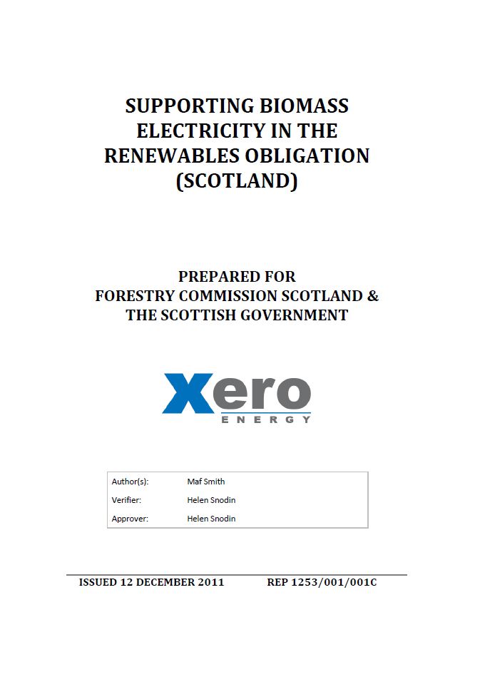 This report was commissioned by the Forestry Commission Scotland (now Scottish Forestry) and the Scottish Government as background material for its review of support for large and small scale biomass electricity only plant under the Renewables Obligation Scotland.
