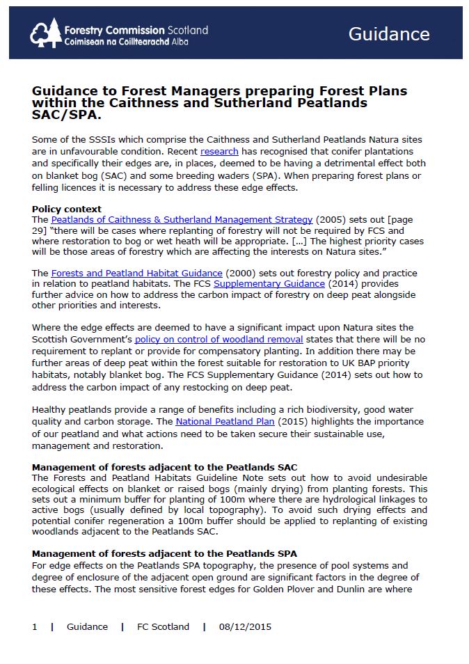Guidance to Forest Managers preparing Forest Plans within the Caithness and Sutherland Peatlands SAC/SPA