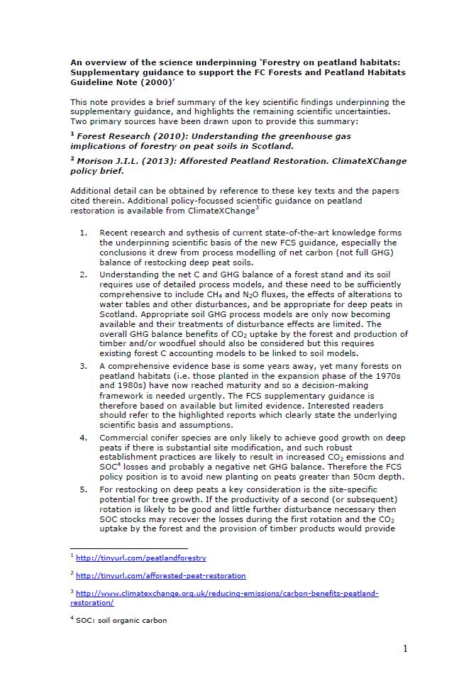 - Forest Research (2010): Understanding the greenhouse gas implications of forestry on peat soils in Scotland
