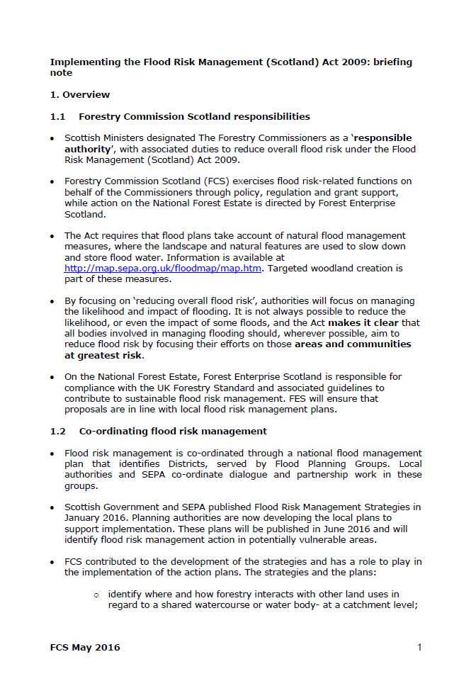 Implementing the Flood Risk Management (Scotland) Act 2009: Briefing Note