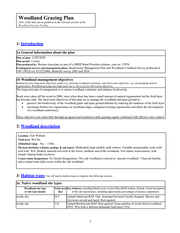 Worked example of a woodland grazing plan