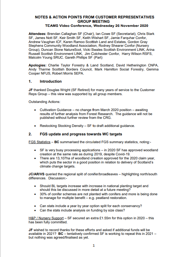 Meeting minutes for Customer Representatives Group (CRG) on 26 November 2020.