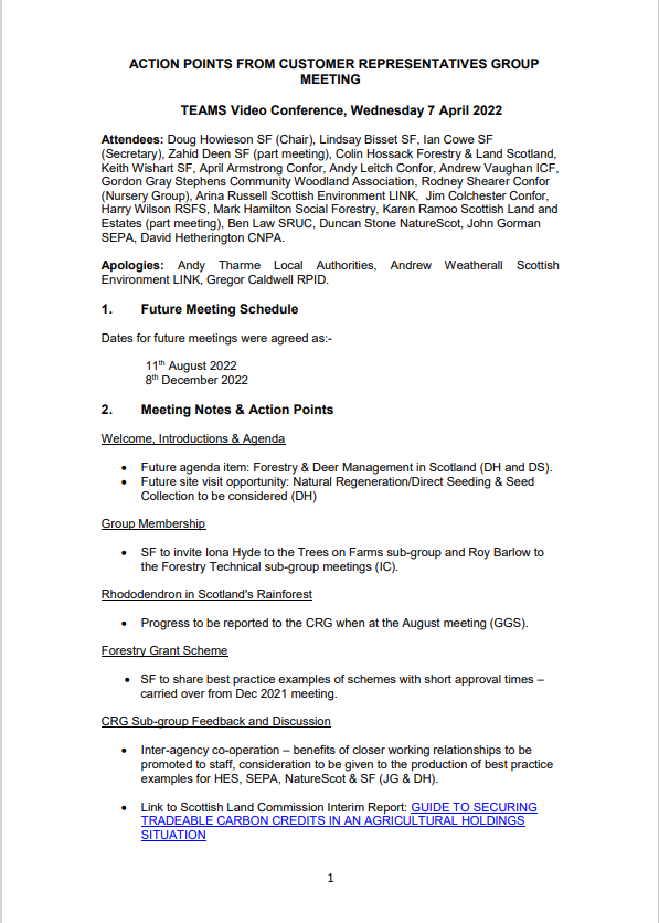 Customer Representative Group - Notes and action points from meeting of 7 April 2022