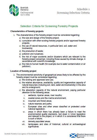 This includes the characteristics of the forestry project, the location and the potential impacts.