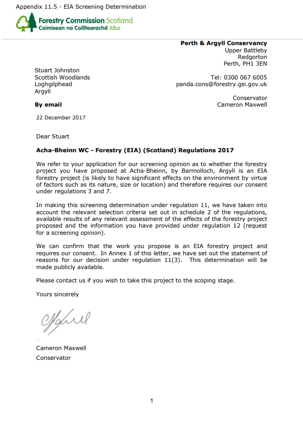 EIA Screening Opinion for proposed woodland creation at Acha-Bheinn.