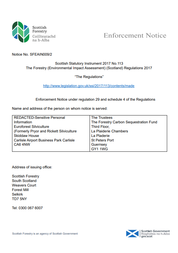 Scottish Forestry has issued an enforcement notice stopping all works in relation to an EIA forestry project, namely proposed woodland creation at Stobo Estate.