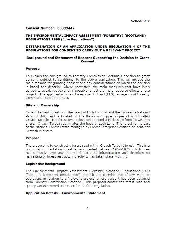 Consent decision schedule for Cruach Tarbeirt. Part two of two.