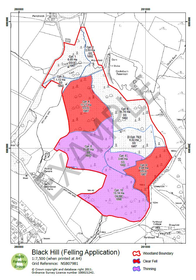 Scale, grid reference and a legend should all be shown and the map should clearly show the application areas.