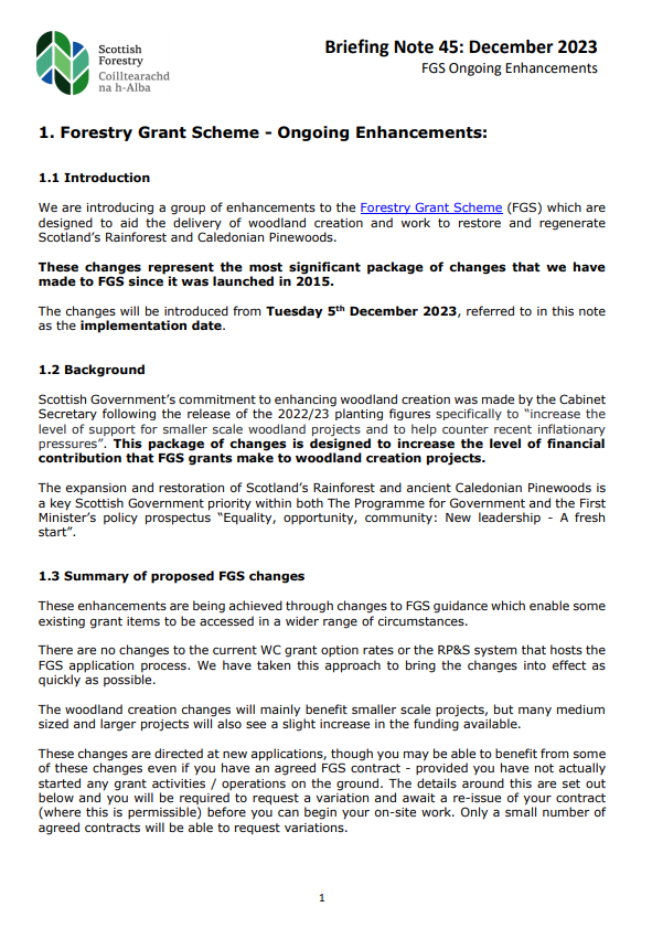Briefing Note 45: Forestry Grant Scheme Ongoing Enhancements - December 2023