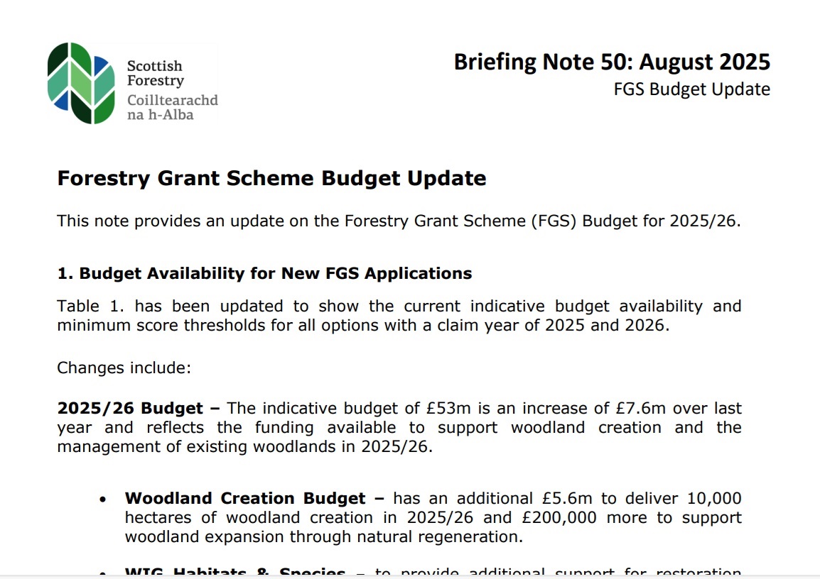 Briefing Note 50: August 2025 Forestry Grant Scheme Budget Update