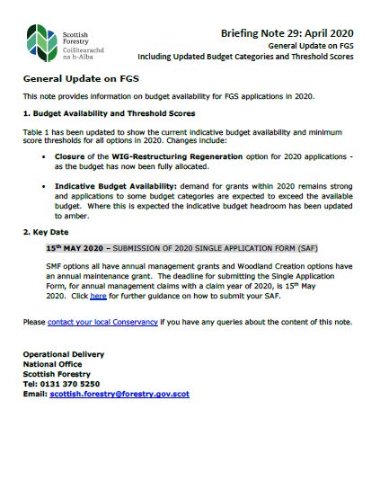 SF BRIEFING NOTE 29 - Update on FGS Budget Categories and Threshold Scores - April 2020.pdf