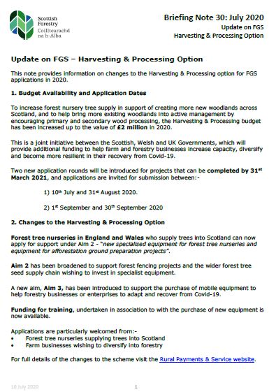 This Briefing Note announces new funding for the Harvesting and Processing Option - July 2020.