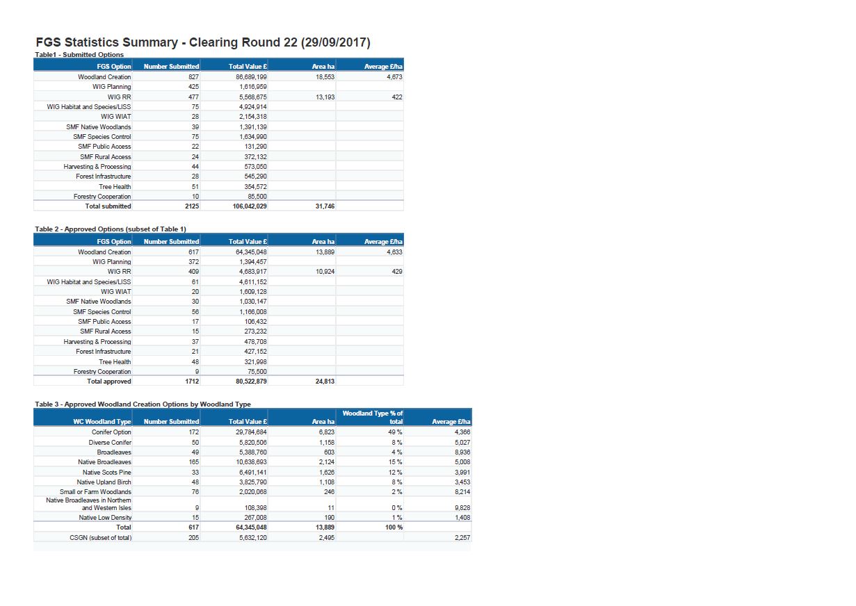Overview of Forestry Grant Scheme Statistics for September 2017.