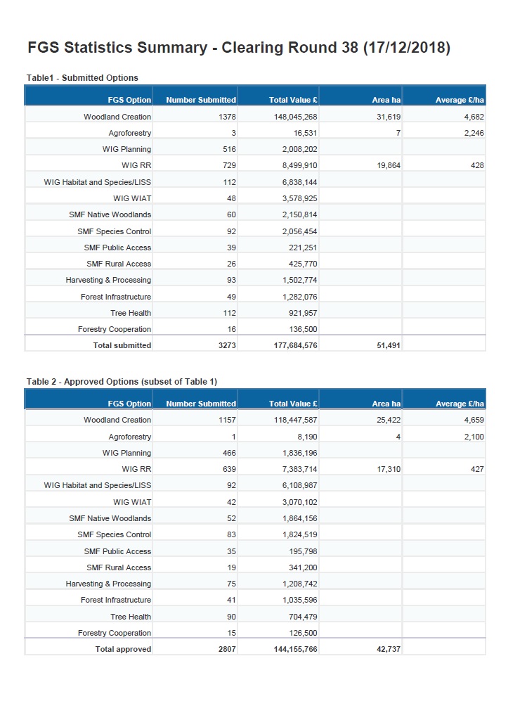 Overview of Forestry Grant Scheme Statistics for December 2018.
