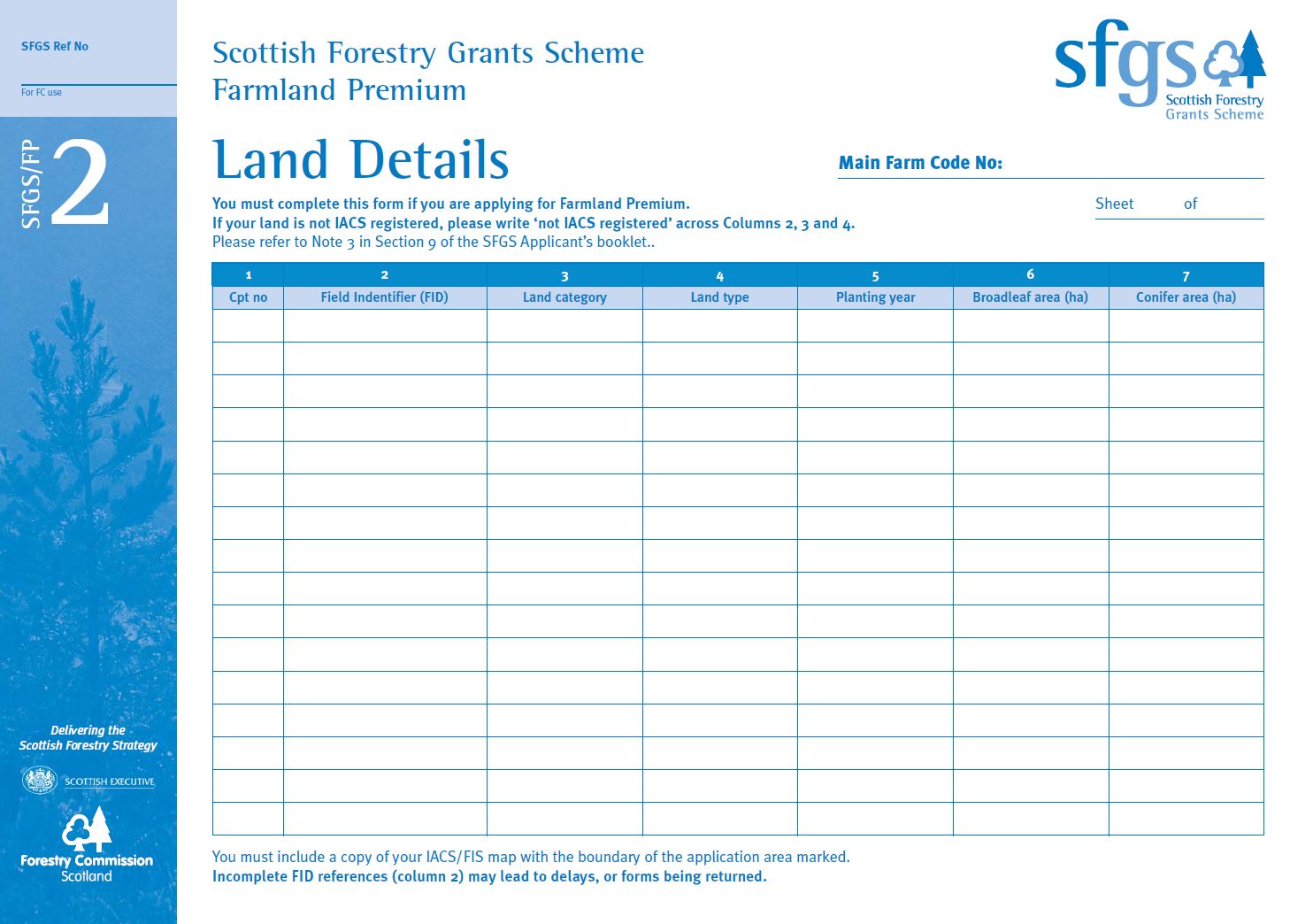 Scottish Forestry Grant Scheme Farmland Premium land details form.