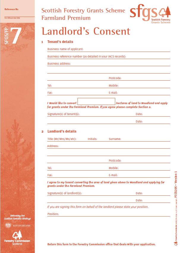 Scottish Forestry Grant Scheme Farmland Premium landlord's consent form.