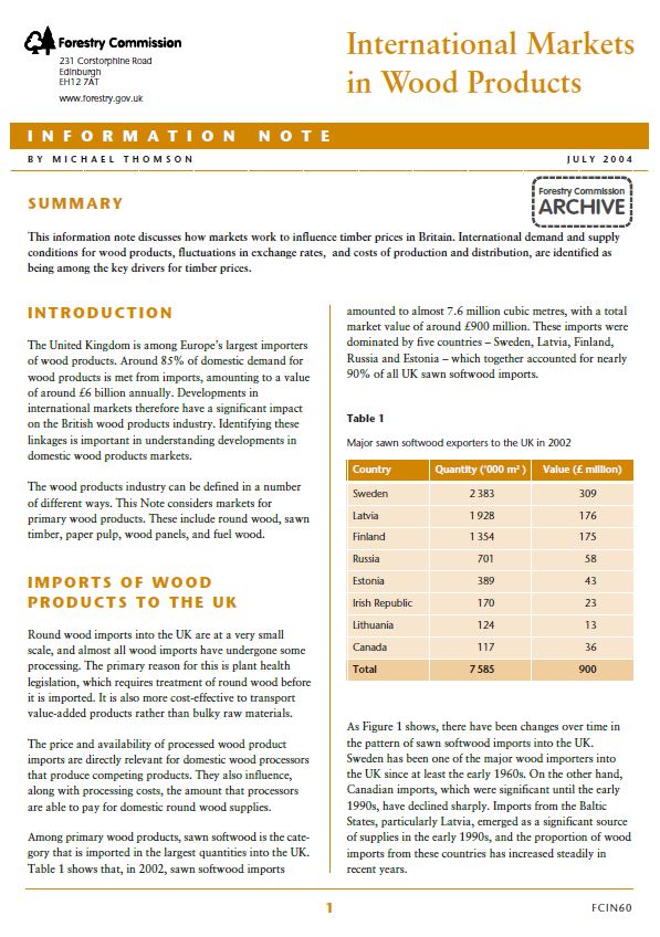 International demand and supply conditions for wood products, fluctuations in exchange rates, and costs of production and distribution, are identified as being among the key drivers for timber prices.