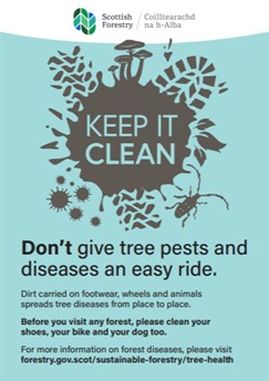 Informational A3 poster to advise members of the public about steps they can take to avoid spreading tree pests and diseases.